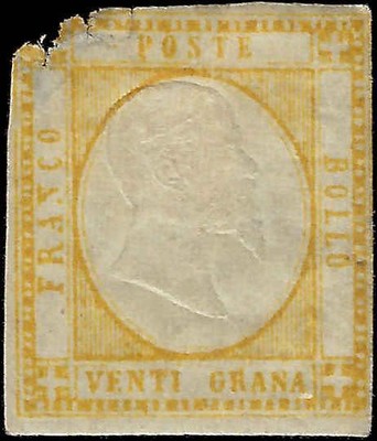 1861 Two Sicilies, Italy 20g Stamp - Sc# 26 - Corner Flaw - Cat-$425!