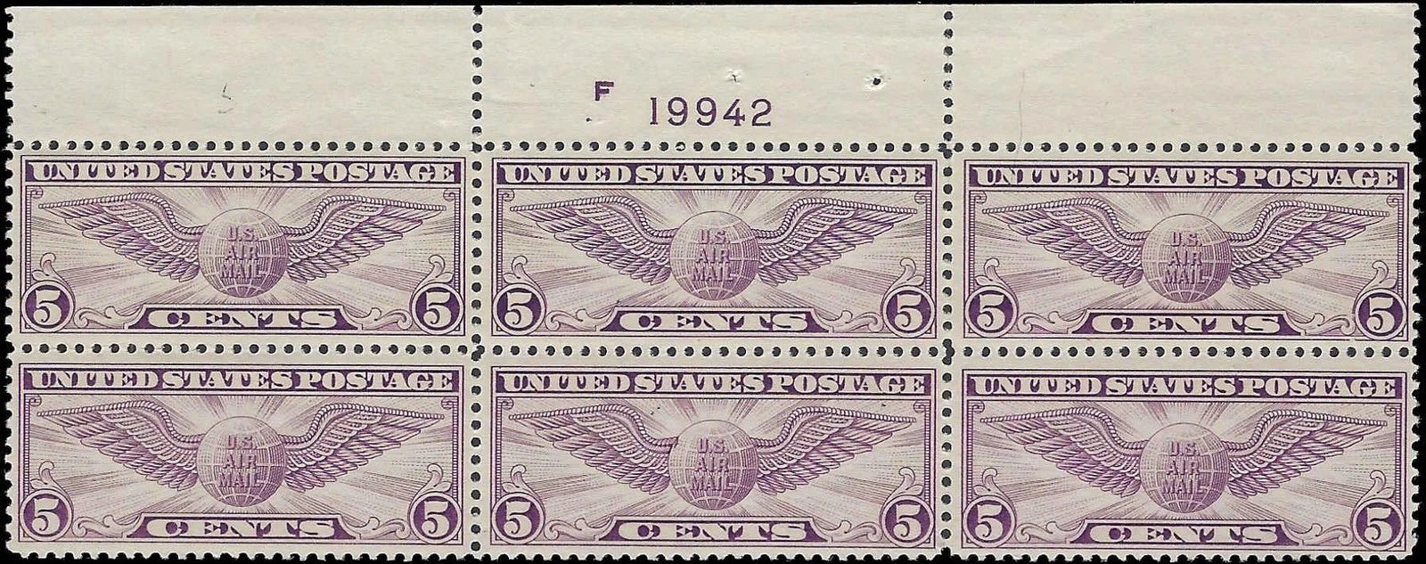 1930 USA Scott C12 Winged Globe Airmail Plate Block of 6 - MNH - Choice! -READ