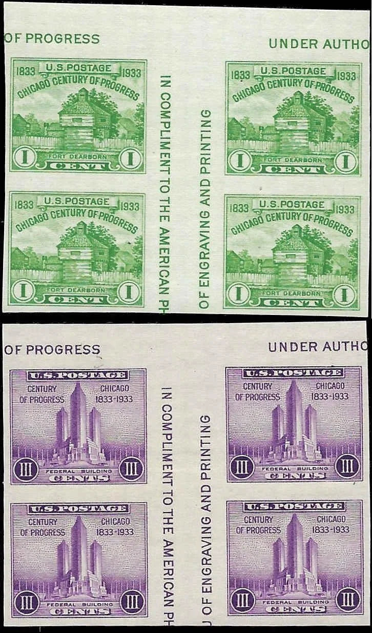 1933 USA Scott 730 & 731 Gutter Blocks of 4 - MH