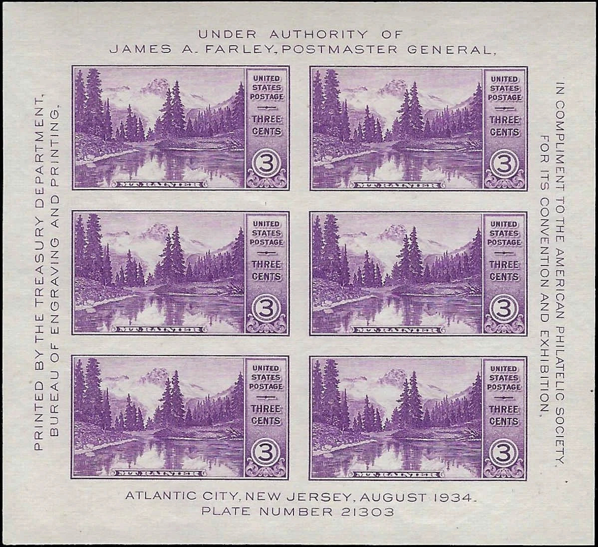 1934 USA Scott 750 Mt Rainer Souvenir Sheet - MH, OG - Nice!