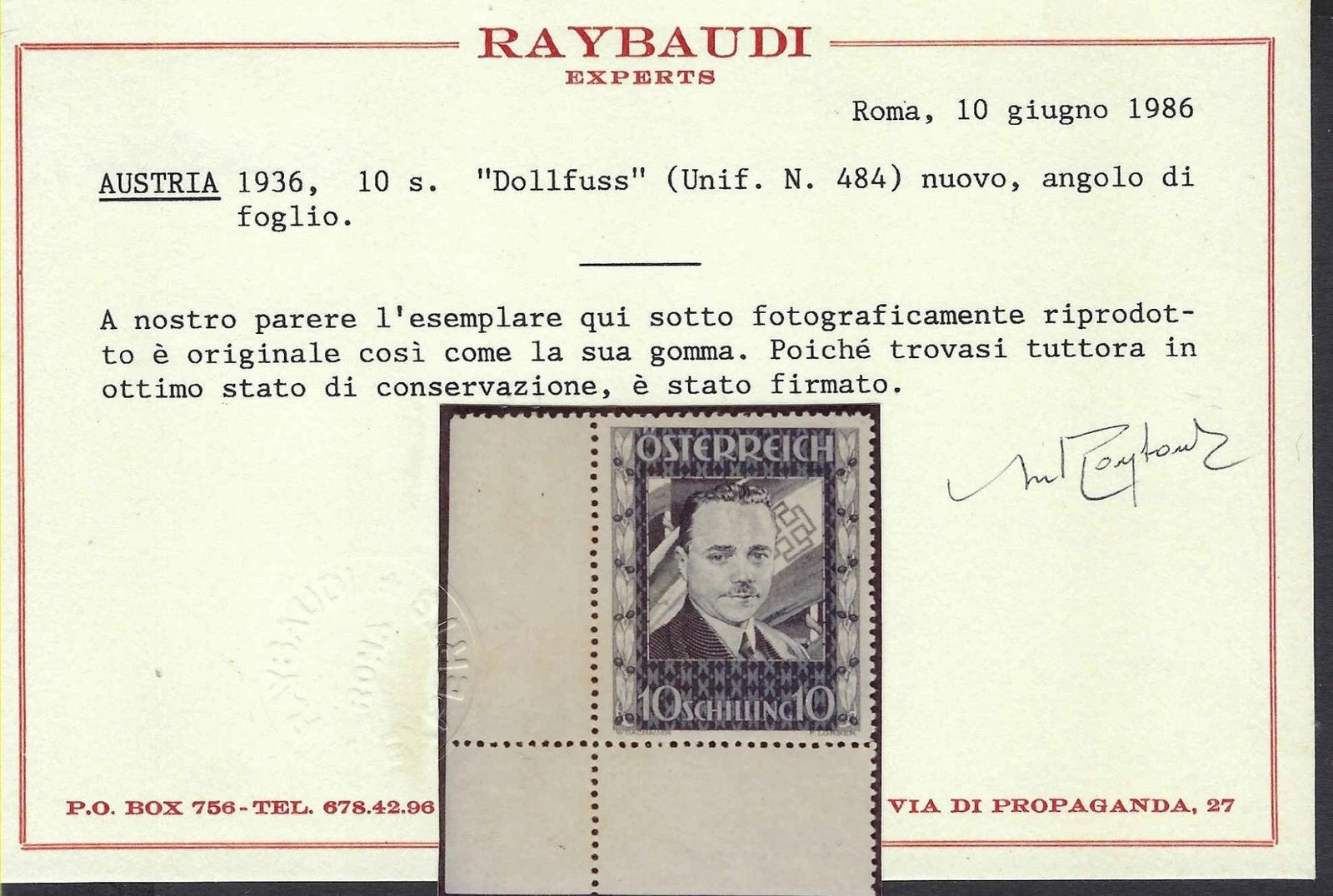 ✔ Expertized: Raybaudi Experts, Rome (1986)