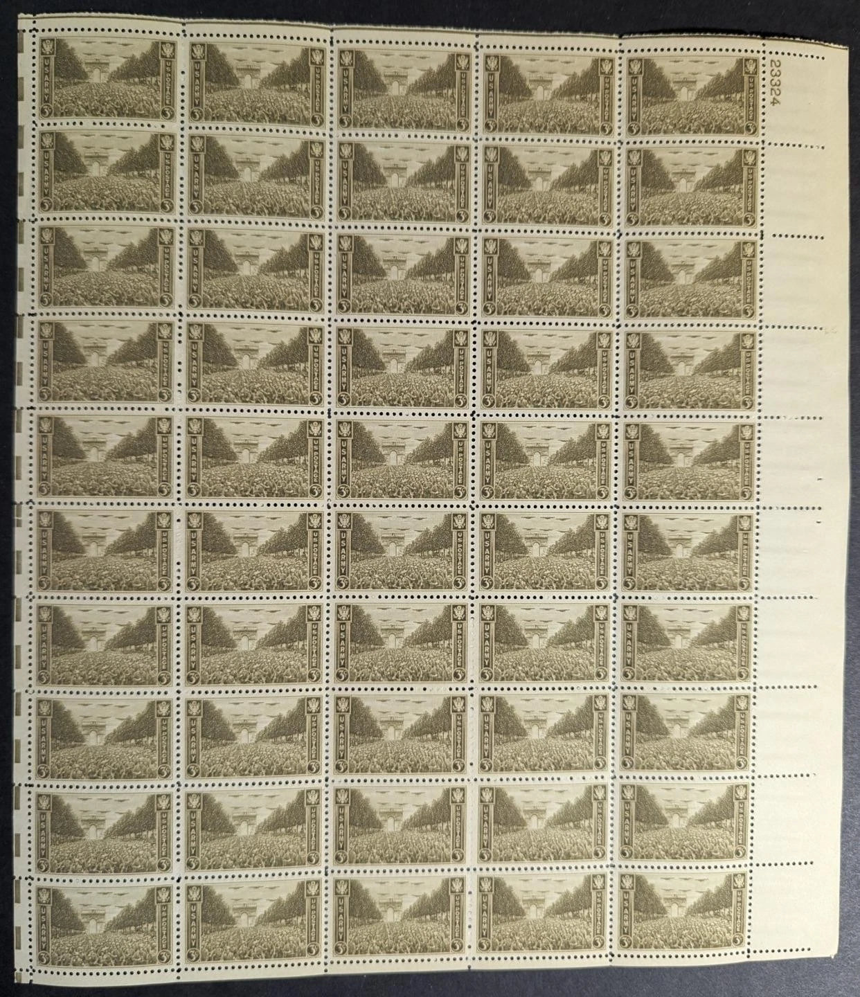 1945 USA US Army 3c Sheet -Scott 934 -MNH, Undisturbed OG -No Sig Flaws -2