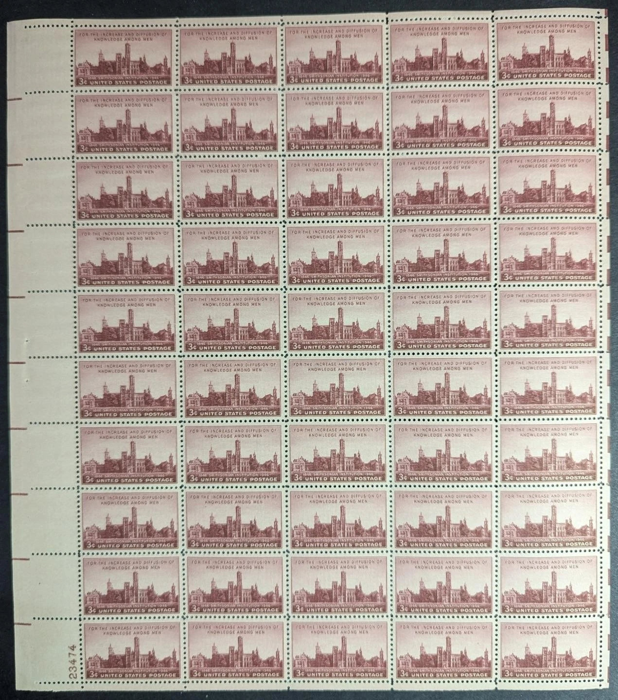 1946 USA Smithsonian 3c Sheet -Scott 943 -MNH, Undisturbed OG - No Sig Flaws-2