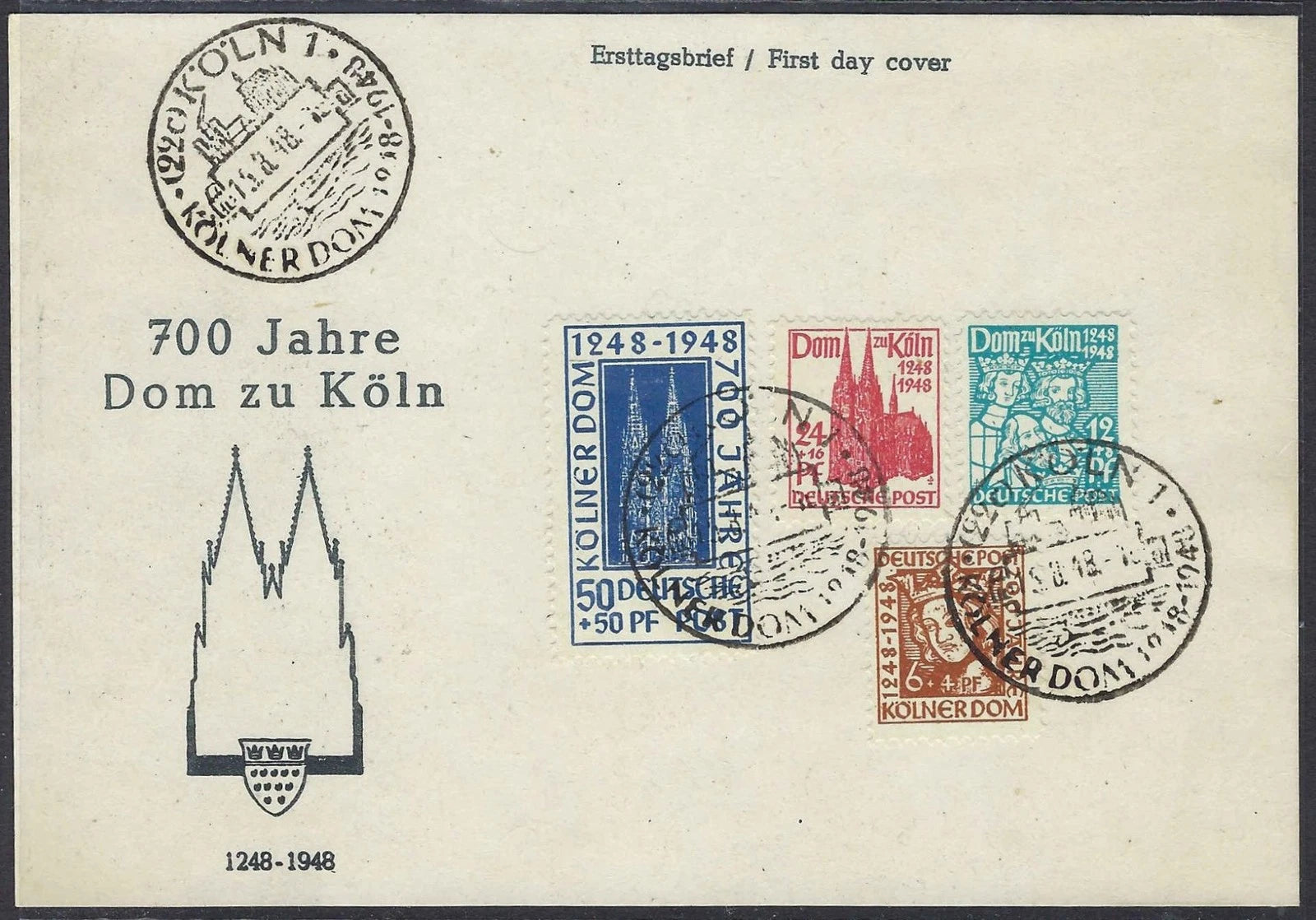 1948 Germany Bizone Cologne Cathedral First Day Card – Scott B298–B301