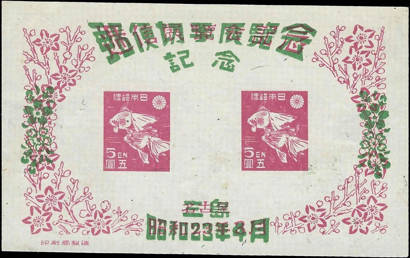 1948 Japan Mishima Stamp Exhibition - Sc# 407 Souvenir Sheet - MH, OG