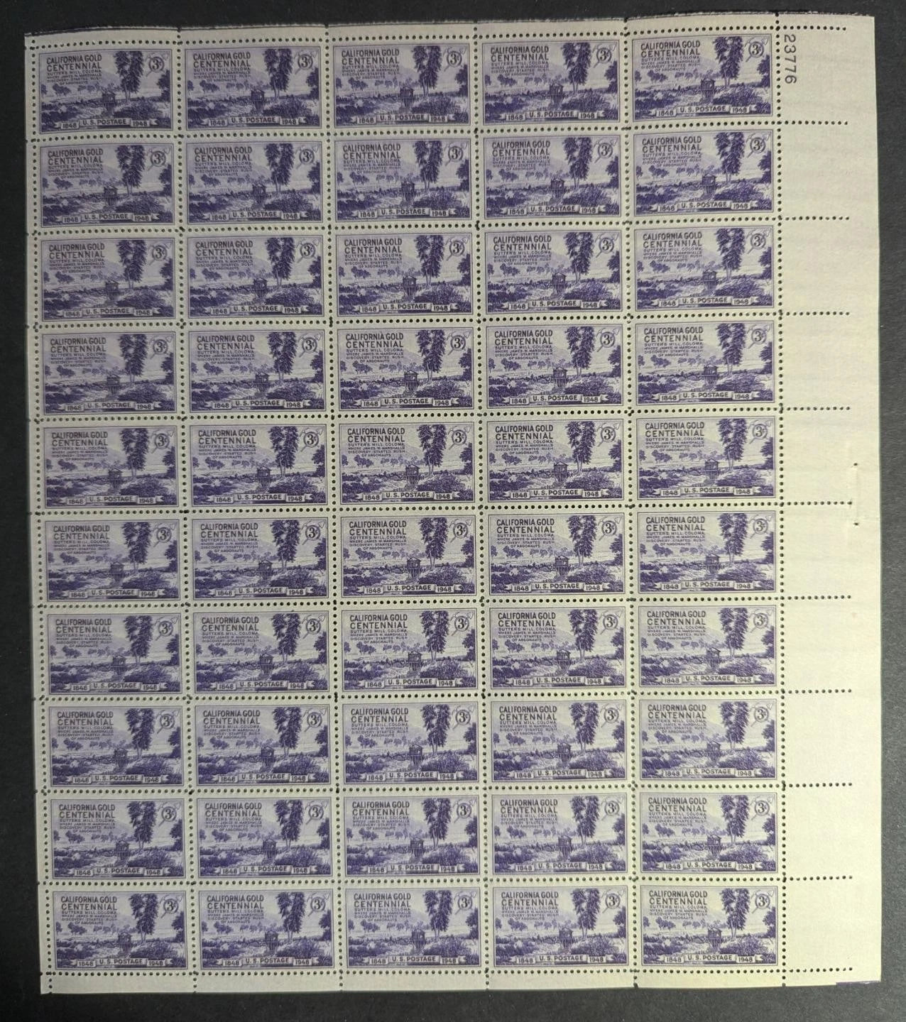 1948 USA California Gold 3c Sheet -Scott 954 -MNH, Undisturbed OG - No Sig Flaws