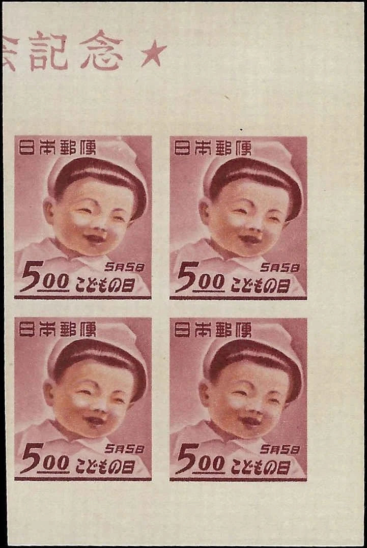 1949 Japan Children's Exhibition Inuyama - Sc# 456, 5y Block of 4 - MLH, OG