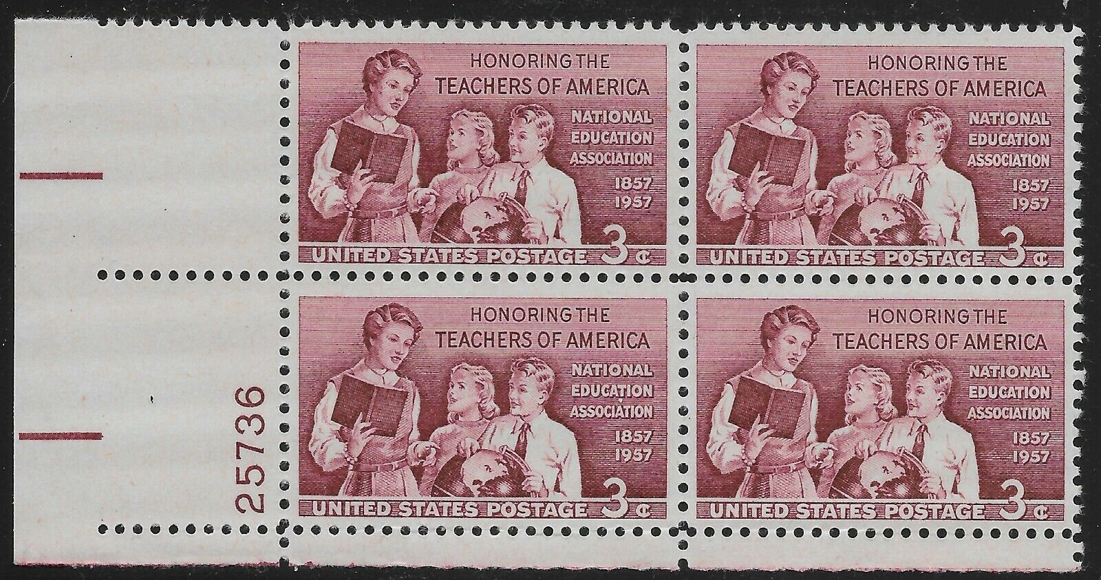 1957 Honoring Teachers Of America Plate Block of 4 3c Postage Stamps - MNH, OG - Scott 1093