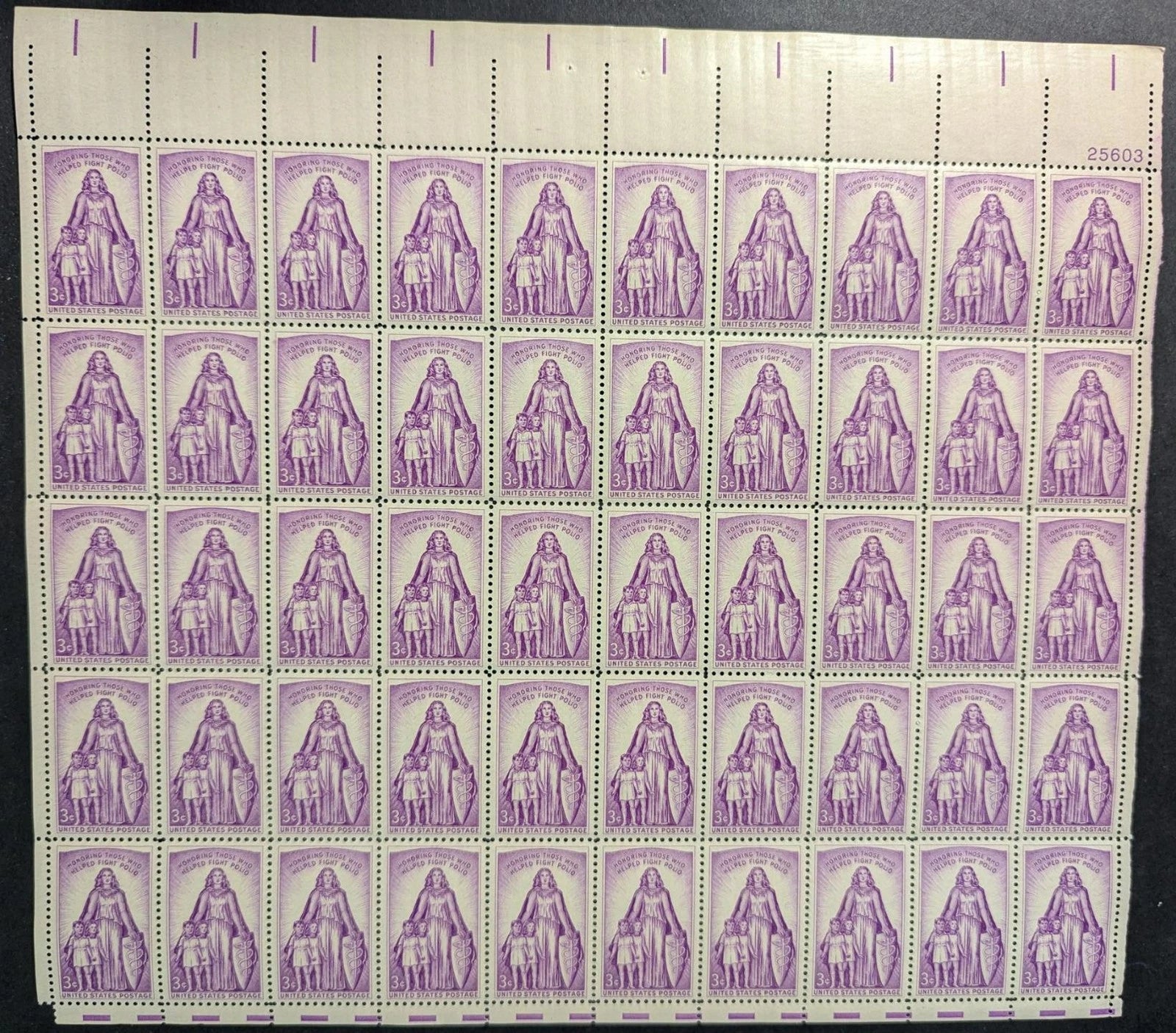 1957 USA 3c Polio Sheet -Scott 1087 -MNH, Undisturbed OG - Corner Piece Missing