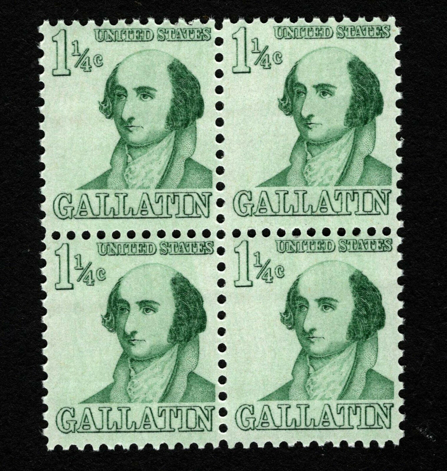 1967 Albert Gallatin Block of 4 1 1/4c Postage Stamps - MNH, OG - Scott 1279