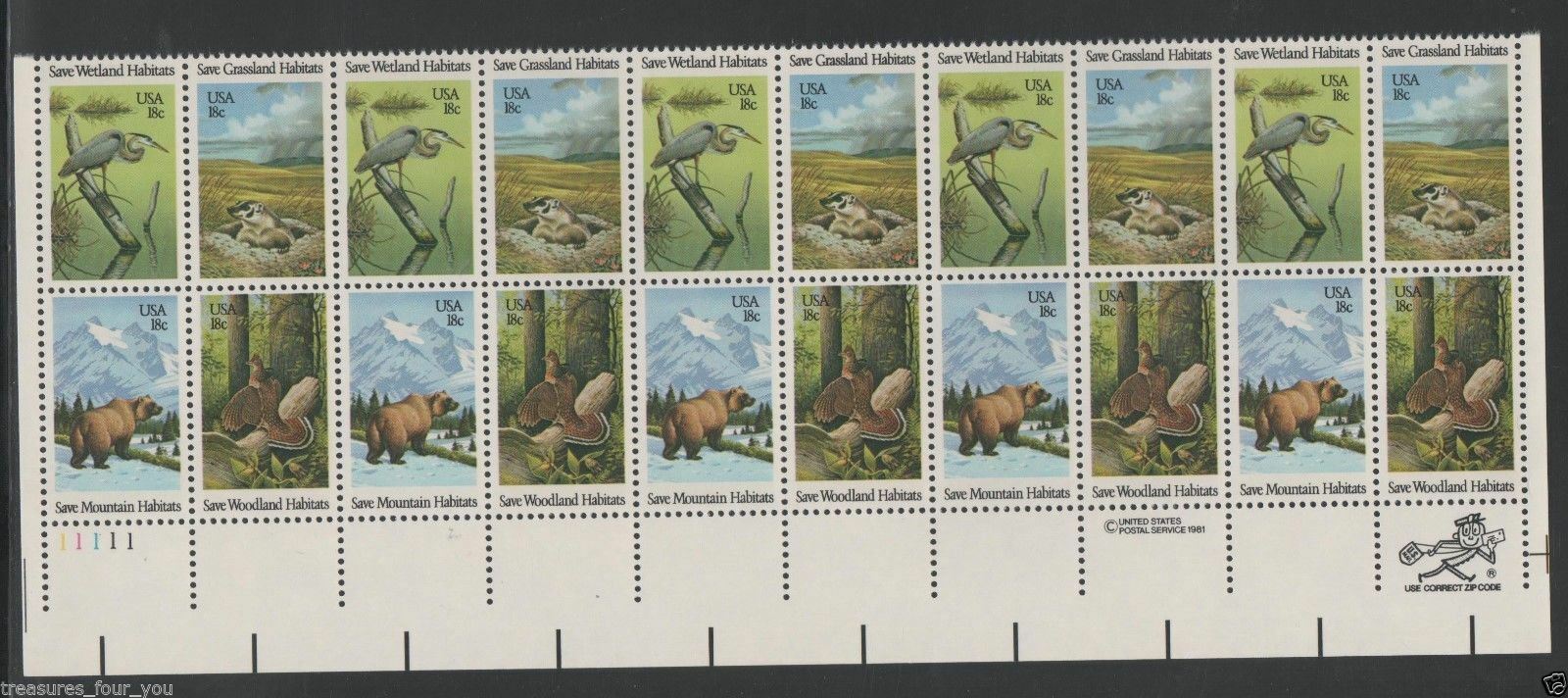 1981 Wildlife Habitat Preservation Plate Block Of 20 18c Postage Stamps Scott 1921-1924 - CW221a