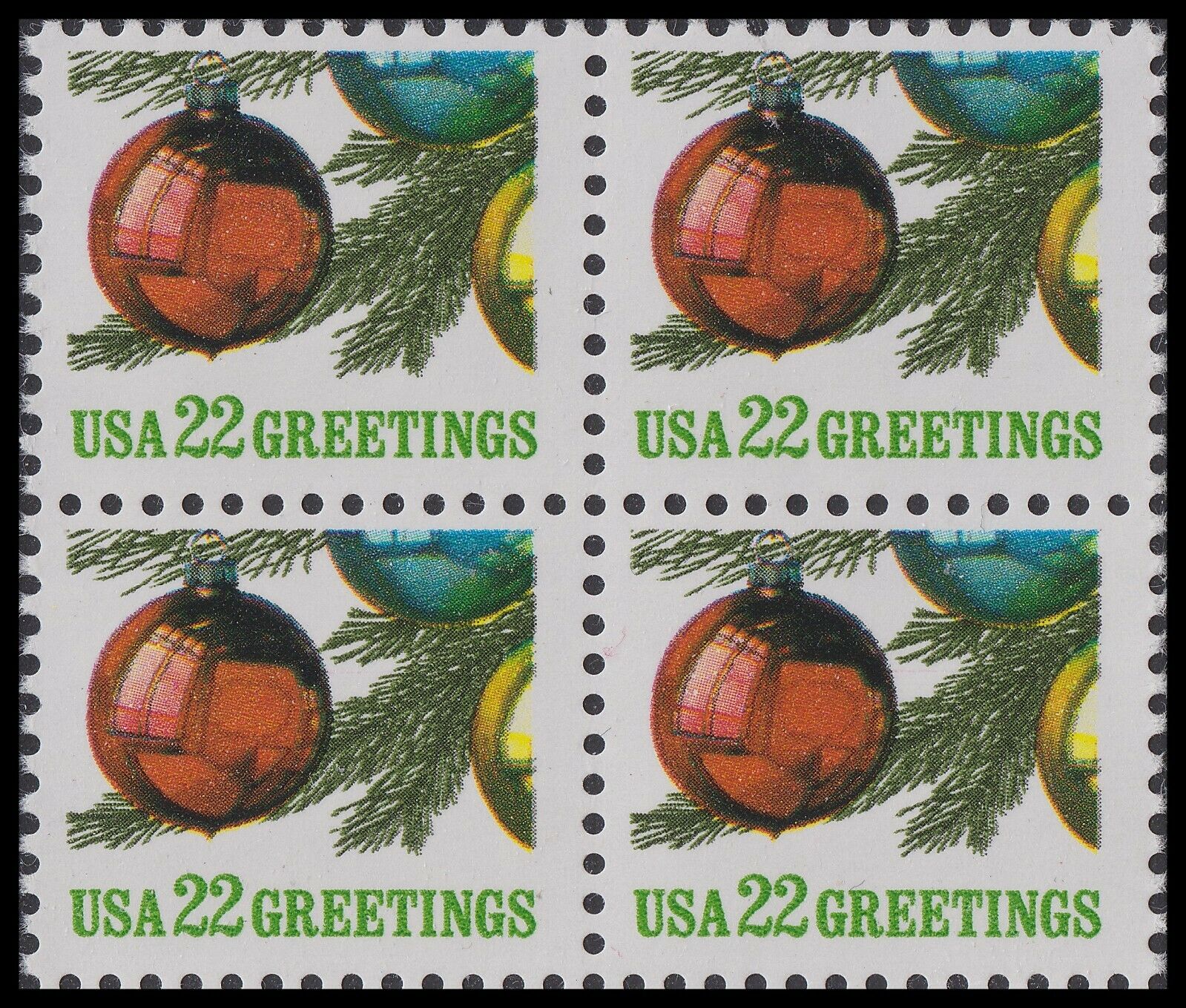 1987 Christmas Ornament Block of 4 22c Postage Stamps - MNH, OG - Scott 2368