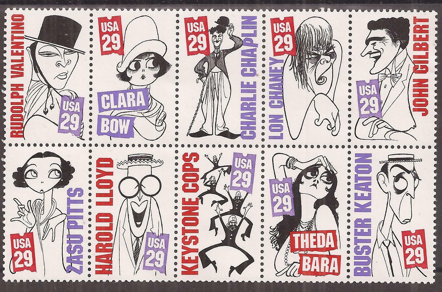 1994 Silent Screen Stars Block Of 10 29c Postage Stamps - Scott 2819--2828 - MNH, OG - CW314a