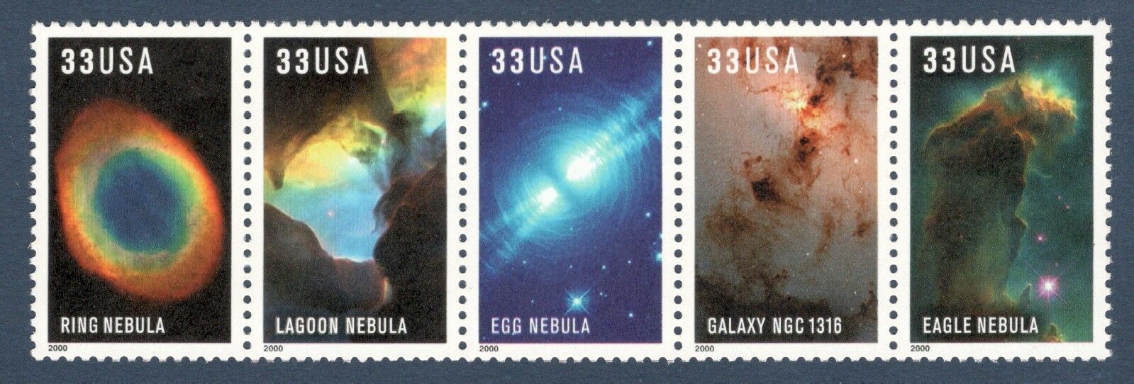 2000 Hubble Space Telescope Images Strip of 5 33c Postage Stamps - MNH, OG - Scott 3384-3388