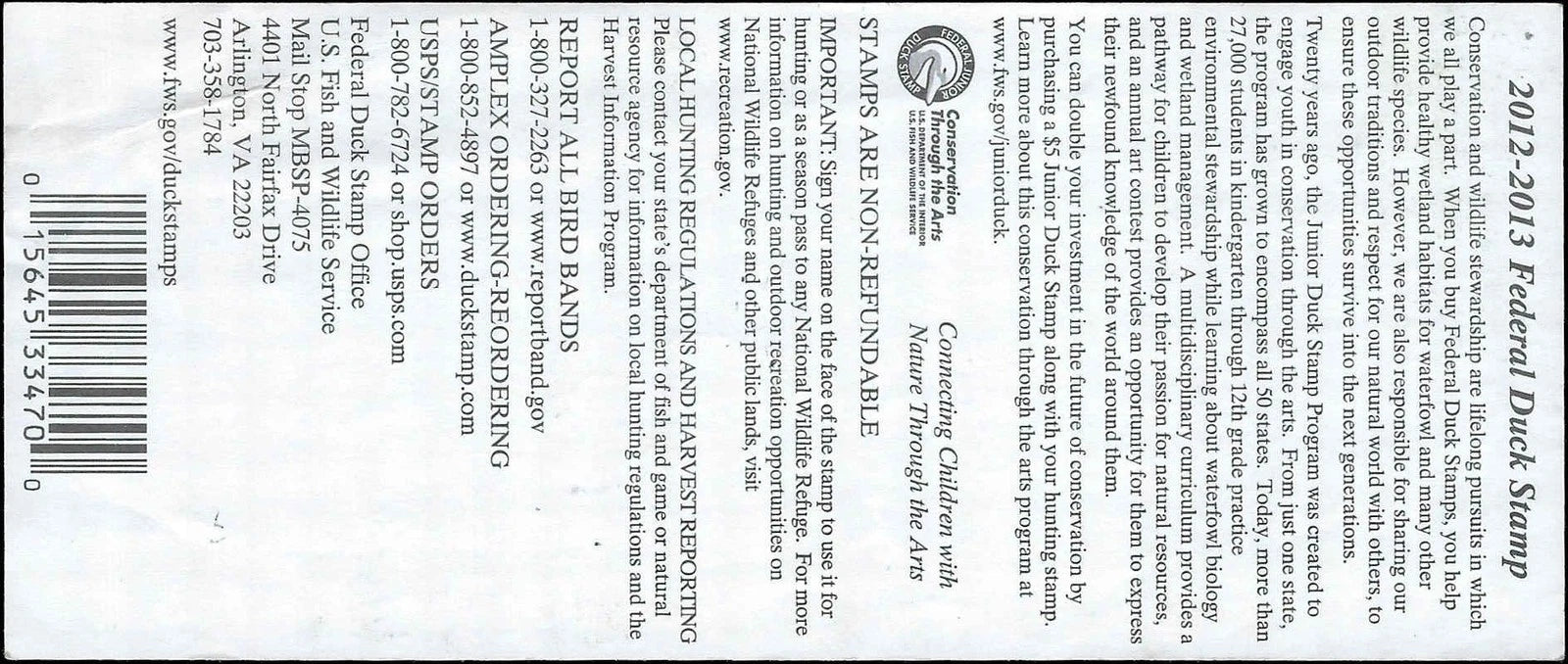 2012 Scott RW79 "Duck Stamp" Hunting Permit Souvenir Sheet - Flaws READ