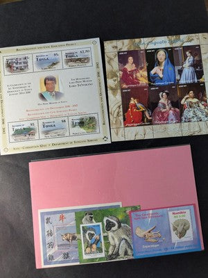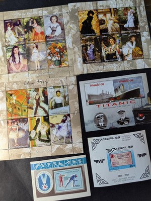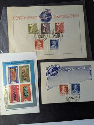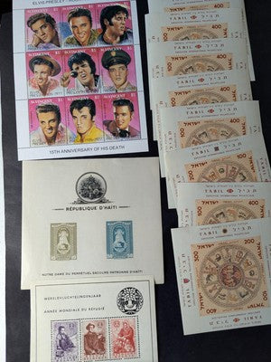 Box of Misc International Stamps, Souvenir Sheets & More - 53 Photos