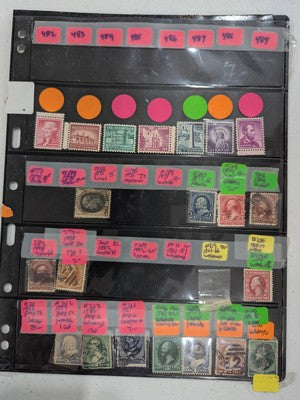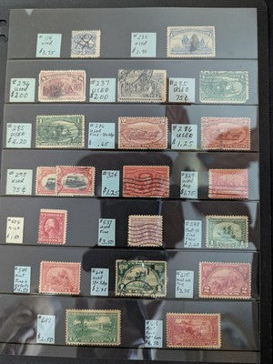Box of Misc USA Stamps in Stock Books & Album Pages. We have a backlog of misc stamps and are offering these in bulk quantity. This includes a mix of old and modern (with much old), mint and used stamps, come being in excellent conditon and some in rough condition. All included stamps are shown in the 224 photos seen by scrolling down within this Description section. Note that this comes from many different collections and estates and as with most large old collections there will be some flaws.