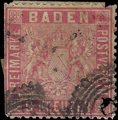 c1861 Baden, Germany 9kr - Scott 14 (Perf 13.5) - with Flaws as Shown - Cat= $175