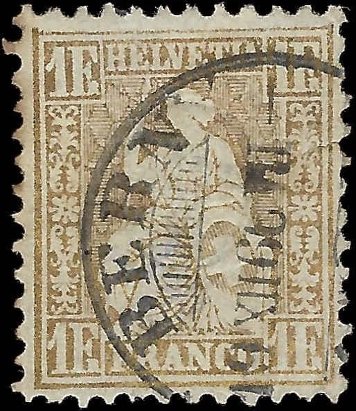c1862 - Switzerland 1f - Scott # 50, Used - Tear Right Side