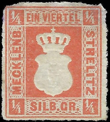 c1864 Mecklenburg-Strelitz, Germany 1/4sg - Sc# 1 - MH, NG - Thin Top