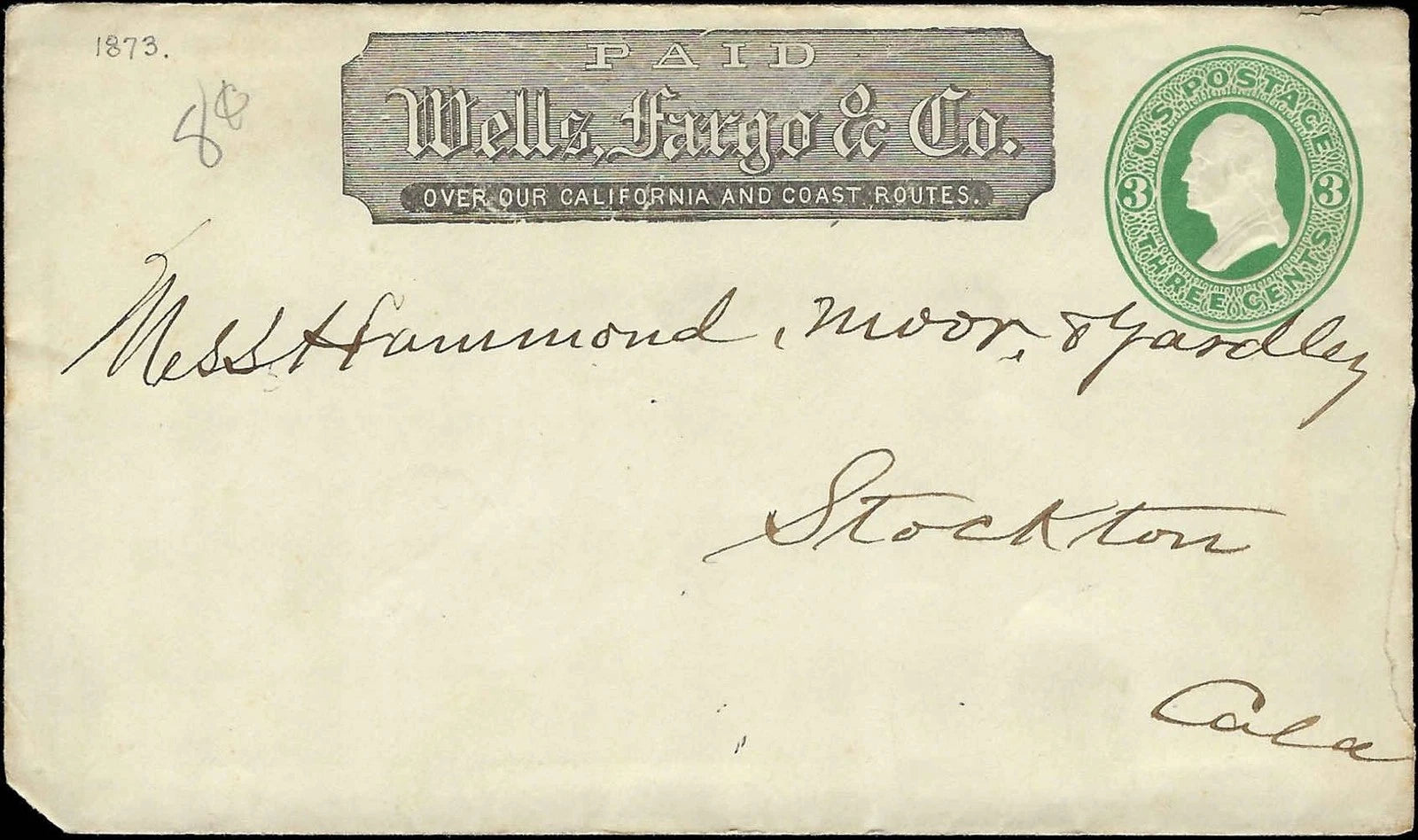 c1873 - Wells Fargo "Over Our California & Coast Routes" Postal Stationary