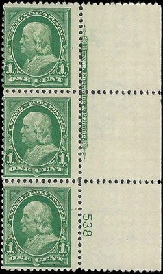 c1898 - Scott 279 Franklin - Imprint Block of 3 - MNH, OG (LH on Margin) - READ