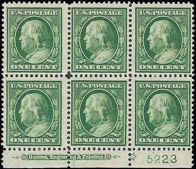 c1908 - Sc# 331 - Star Imprint Block of 6 - MNH, Undisturbed OG - Cat= $160