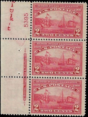 c1909 - #372 2c Hudson-Fulton Imprint Block of 3 - MNH, OG