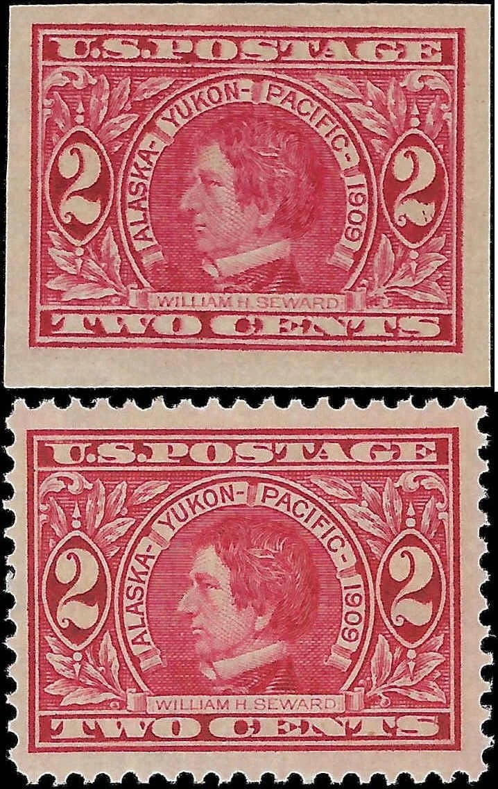 c1909 - Scott #370, 371 2c - Perf & Imperf - Perf is MNH, Imperf = MH - Nice!
