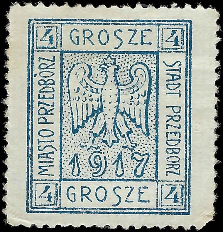 c1917 - Poland 4G Przedborz City Local Post Unused, Hinged, No Gum