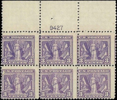 c1919 - Sc# 537 2c Victory Issue Plate # Block of 6 - MNH, OG - Hinge in Margin