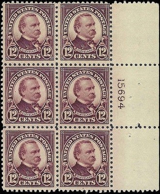 c1923 - Scott 564 Hayes Plate Block of 6 - MLH, OG - Cat= $115