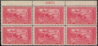 c1925 - Sc# 618 2c Lexington-Concord Plate Block of 6 - MNH - Lightly Dist Gum