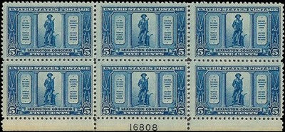 c1925 - Sc# 619 5c Lexington-Concord Plate Block of 6 - MNH - Undisturbed Gum