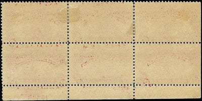 c1926 - Scott 627 2c Liberty Plate # Block of 6 - MH, Hinge Reinforced Perfs