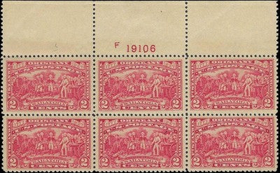 c1927 - Scott 644 2c Burgoyne Issue Plate # Block of 6 - MNH, OG - H in Margin