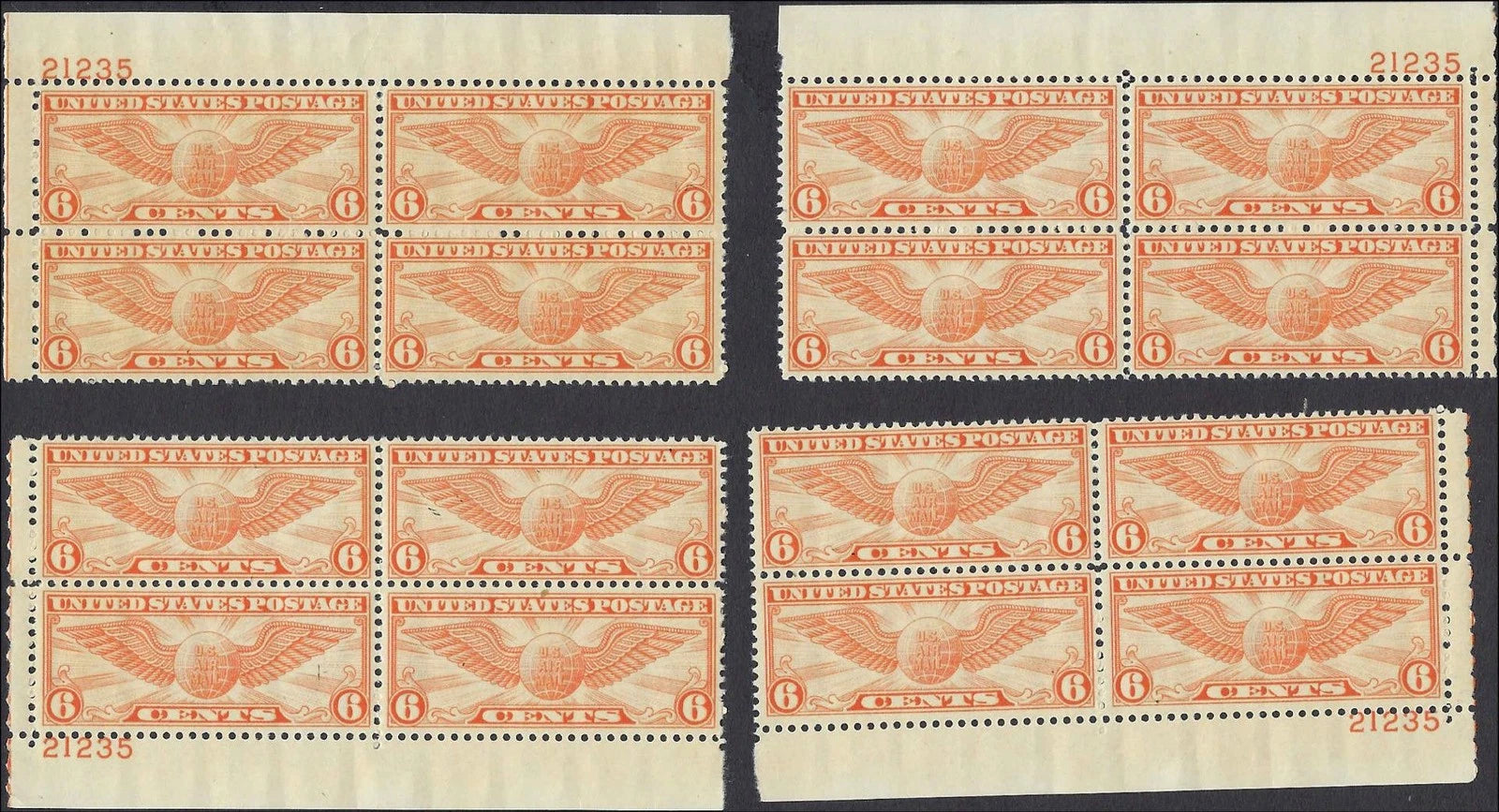 c1934 Scott C19 Airmail Plate Block Set - All MNH, OG