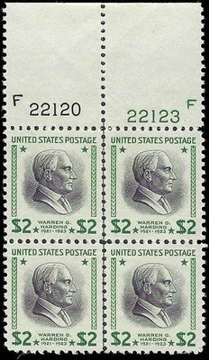 c1938 - Sc# 833 $2 Harding Plate # Block of 4 - MNH, OG - Choice Centering!