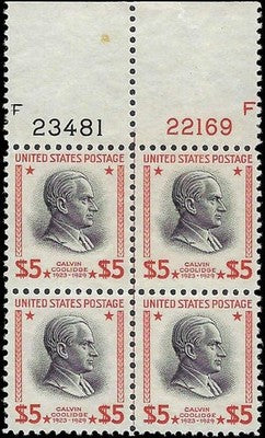 c1938 - Sc# 834 $5 President Coolidge Plate # Block of 4 - MNH, OG - Cat- $325!