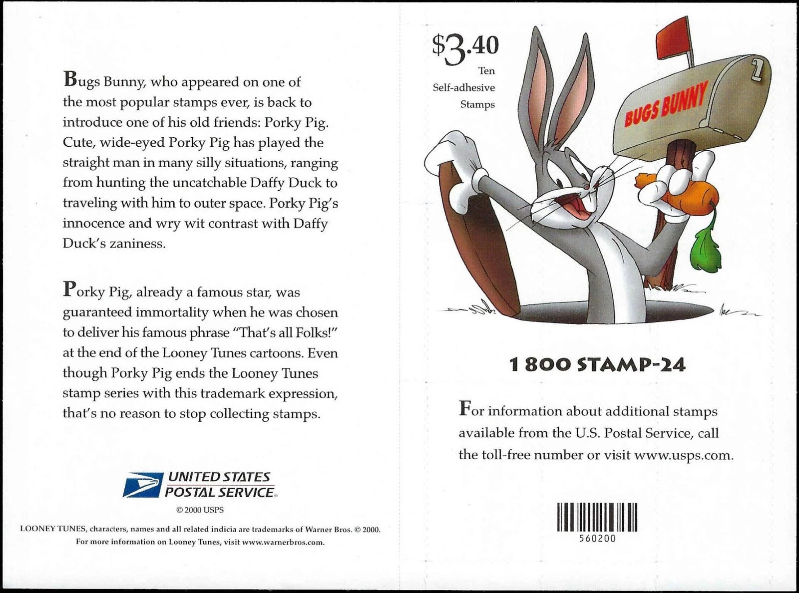 c2001 - Scott 3535 Porky Pig 10th Stamp Imperf Sheet - MNH - Cat= $50