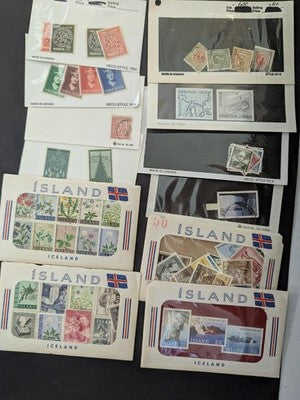 Box of Misc (Mostly) Nordic Europe Stamps (Much Iceland!) in Glassines Unopened From Estate!- From Various Nordic Countries. Some complete sets old and modern, mint and used. I have a backlog of misc stamps and am offering these mostly unseen and unchecked. This includes a mix of old and modern, mint and used stamps that came in the photoed glassines and most of the glassines have not been opened or inspected since purchased. All included glassines with their stamps are shown in the 67 photos seen by scrolling down within this Description section. Note that separate photos may show both sides of some of the glassines to give you the best view of what may be inside. Note that these are raw and unexamined so as with most large old collections there will likely be some flaws.