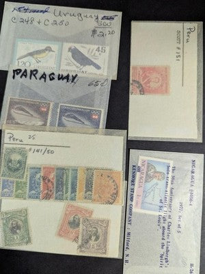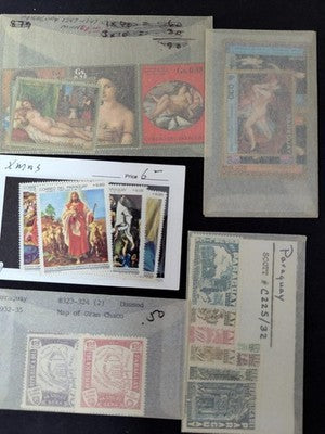 Quantity of Latin America Stamps in Bags, Stock Cards and Glassines - Much of Which is Unchecked From Estate! - Many Sets - Some Old - Including Topicals in Bags, Stock Cards and Glassines. I have a backlog of misc stamps and am offering many of these unseen and unchecked. This includes a mix of old and modern, mint and used stamps some of which came in the photoed bags, etc, and in many cases have not been opened or inspected since purchased. All included glassines with their stamps are shown in the 158 photos seen by scrolling down within this Description section. (Any that were in envelopes that did not allow the stamps to be viewed at all were removed from their envelope to be better displayed in the photos.) Note that separate photos may show both sides of some of the bags, etc. to give you the best view of what may be inside. Many of these are raw and mostly unexamined so as with most large old collections there will likely be some flaws.