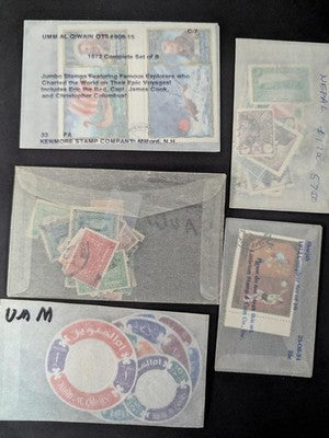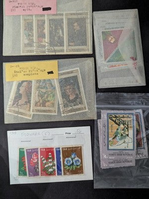 Quantity of Mideast Stamps including many sets in Bags, Stock Cards and Glassines Much of Which is Unchecked From Estate! Many Sets! Many Topicals! I have a backlog of misc stamps and am offering many of these unseen and unchecked. This includes a mix of old and modern, mint and used stamps some of which came in the photoed bags, etc, and in many cases have not been opened or inspected since purchased. All included glassines with their stamps are shown in the 118 photos seen by scrolling down within this Description section. (Any that were in envelopes that did not allow the stamps to be viewed at all were removed from their envelope to be better displayed in the photos.) Note that separate photos may show both sides of some of the bags, etc. to give you the best view of what may be inside. Many of these are raw and mostly unexamined so as with most large old collections there will likely be some flaws.