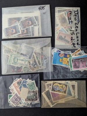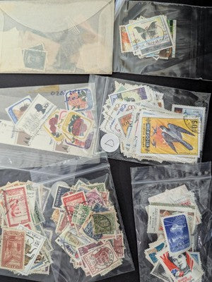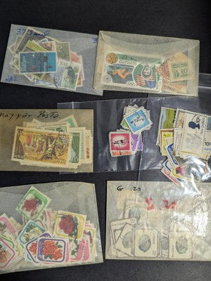 Quantity of Misc International Stamps in Bags Unchecked From Estate! Many Older! I have a backlog of misc stamps and am offering these mostly unseen and unchecked. This includes a mix of old and modern (but mostly old), mint and used stamps that came in the photoed bags, etc, and in most cases have not been opened or inspected since purchased. All included glassines with their stamps are shown in the 93 photos seen by scrolling down within this Description section. Note that separate photos may show both sides of several of the bags, etc. to give you the best view of what may be inside. Note that these are raw and unexamined so as with most large old collections there will likely be some flaws.