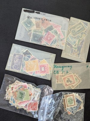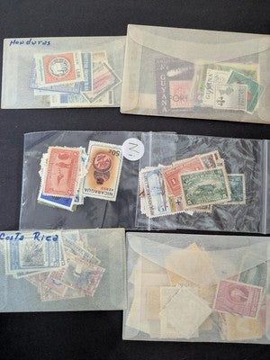 Quantity of Misc Latin America Stamps in Bags Unchecked From Estate! Some Older! Some Sets! I have a backlog of misc stamps and am offering these mostly unseen and unchecked. This includes a mix of old and modern (but mostly old), mint and used stamps that came in the photoed bags, etc, and in most cases have not been opened or inspected since purchased. All included glassines with their stamps are shown in the 98 photos seen by scrolling down within this Description section. (A few that were in envelopes that did not allow the stamps to be viewed at all were removed from their envelope to be better displayed in the photos.) Note that separate photos may show both sides of some of the bags, etc. to give you the best view of what may be inside. Note that these are raw and unexamined so as with most large old collections there will likely be some flaws.
