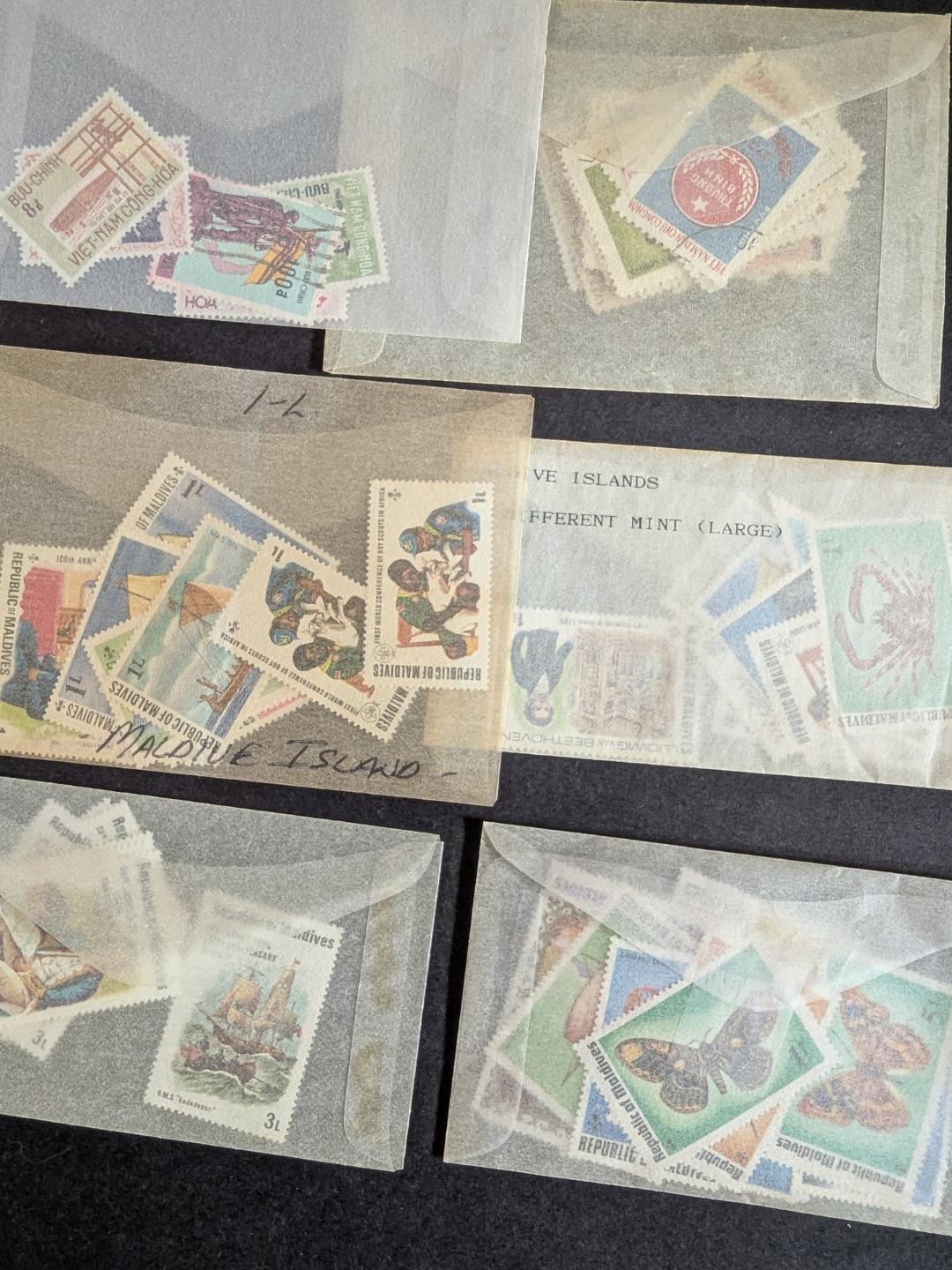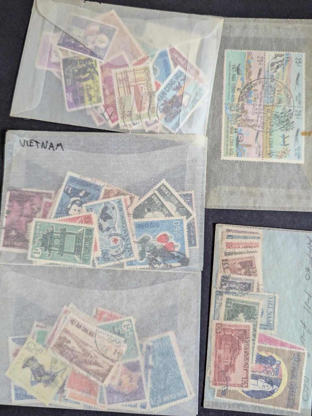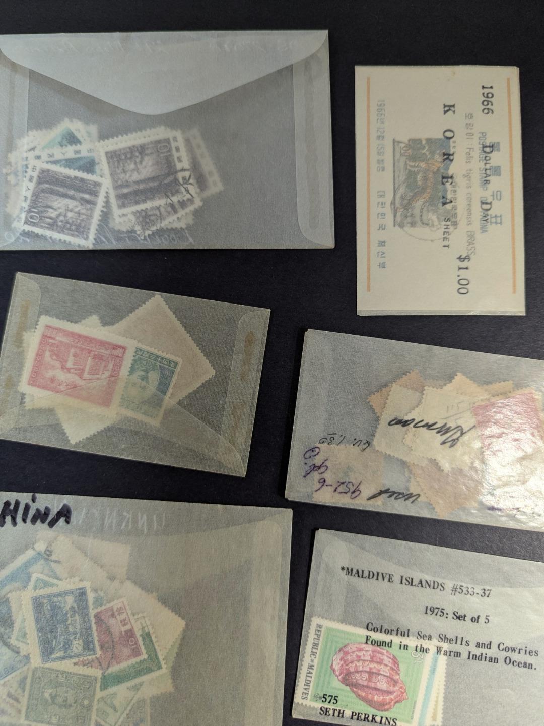 Quantity of Various Asia Stamps - Mint & Used - Many Sets - See 91 Photos. Most are in stock cards, glassines or bags as received. All included stamps are shown in the about 91 photos seen by scrolling down within this Description section. (Any that were in envelopes that did not allow the stamps to be viewed at all were removed from their envelope to be better displayed in the photos.) Note that separate photos may show both sides of some of the bags, etc. to give you the best view of what may be inside. Some of these are raw and mostly unexamined so as with most large old collections there will likely be some flaws.