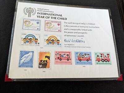 United Nations UN Homemade Souvenir Card Album ~92 Photos With about 86 1970s-1980s UN Souvenir Cards. Album is very old and in rough condition, however the Souvenir Cards appear to be most or all in excellent condition - mounted hingeless in the album. There is significant duplication of the souvenir cards and there could be flaws so please look closely at the photos.