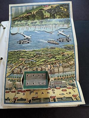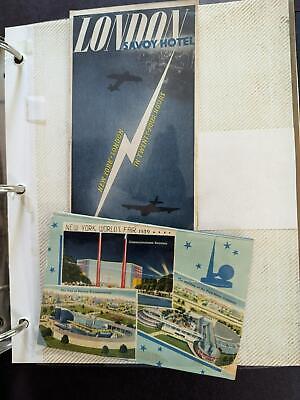 A Large Lot of About 66 Photo Album Pages of Travel Related documents, brochures, souvenirs and more - most pre World War II (and much from the 1930's). Includes a Reich Germany (Nuremberg) travel brochure, steamer and air travel (airplane) souvenirs, menus, hotel and resort souvenirs and more.